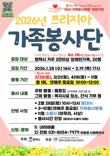 평택시장애인가족지원센터, 가족희망봉사단 ‘프리지아’ 단원 모집