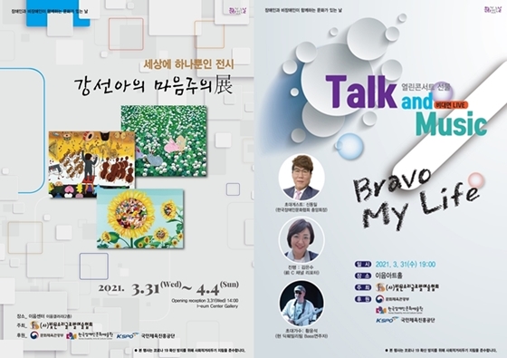 에이블포토로 보기▲ ‘강선아의 마음주의 展’과 ‘부라보 마이라이프’ 토크 앤 뮤직 포스터. ⓒ(사)빛된소리글로벌예술협회