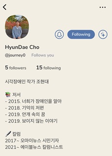클럽하우스 프로필 화면. ⓒ조현대 에이블포토로 보기▲ 클럽하우스 프로필 화면. ⓒ조현대그 옛날 시각장애인들은 도스 운영체제에서 천리안, 나우누리, 하이텔을 통해 자유로운 컴퓨터 채팅을 할 수 있었다. ‘가라사대’라는 음성 지원 프로그램이 있었기 때문이다.