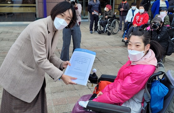 이어 “우리는 현 코로나 재난 상황에서 장애인시설의 위험상과 왜 탈시설이 정답인지 절실히 느꼈다. 하지만 여전히 많은 장애인이 사회와 분리된 채 살아가고 있다. 장애인이 스스로 원하는 곳에서 거주하며 살아갈 수 있도록 장애인탈시설지원법이 반드시 제정돼야 한다”고 피력했다.