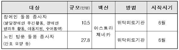 장애인 및 노인돌봄 종사자 38.3만명 접종개요.ⓒ질병관리청 에이블포토로 보기▲ 장애인 및 노인돌봄 종사자 38.3만명 접종개요.ⓒ질병관리청■장애인 돌봄종사자 38.3만명 포함
