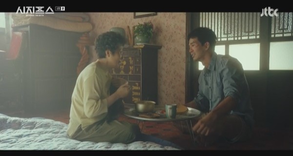 정현기를 데리고 나오는 한태술. ⓒjtbc 에이블포토로 보기▲ 정현기를 데리고 나오는 한태술. ⓒjtbc한태술과 강서해는 아시아마트에서 기진맥진해서 벌거벗고 쓰러진 정현기(고윤 분)를 발견한다. 각설탕 하나를 옮기는 것도 쉽지 않음으로, 많은 것을 간직한 인간이 미래에서 넘어오려면 옷도 거추장스러우므로 벗고 오는 경우가 많다는 것이다.