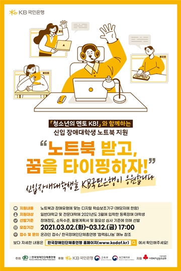 ‘KB 신입 장애대학생 노트북 지원사업’ 포스터. ⓒ한국장애인단체총연맹