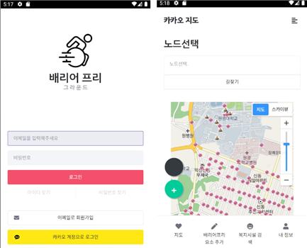 휠체어 네비게이션 앱과 유사하며 다만, 현재는 익산 지역에서만 사용 가능하다. 앞으로 사용 가능지역을 점차 넓혀갈 계획이다. ‘배리어프리’는 구글 플레이 스토어에서 ‘배리어프리’검색 시 무료로 다운이 가능하다.