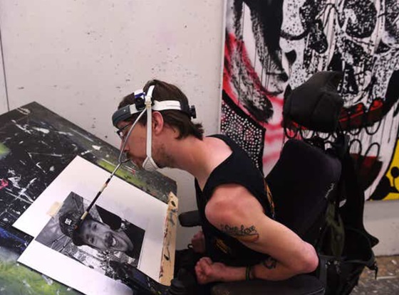 포걸씨는 머리에 쓴 도구에 붓을 끼워 놓은 상태에서 그림을 그립니다. 처음엔 익숙해지는데 쉽지 않았지만 그림을 가르쳐 준 사람과 비슷한 장애여서 그를 따라 하면서 배우게 되었습니다. 그의 작품은 몇 몇 소도시의 갤러리에 상설 전시되어 언제든지 관람할 수 있습니다.