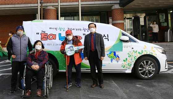 성남시장애인종합복지관이 24일 복지관 주차장에서 첫 이용고객 장애인 3명과 ‘조이(Joy)누리 카 시승식’을 진행했다. ⓒ성남시장애인종합복지관 에이블포토로 보기▲ 성남시장애인종합복지관이 24일 복지관 주차장에서 첫 이용고객 장애인 3명과 ‘조이(Joy)누리 카 시승식’을 진행했다. ⓒ성남시장애인종합복지관성남시장애인종합복지관(관장 채정환, 이하 성남장복)이 24일 복지관 주차장에서 첫 이용고객 장애인 3명과 ‘조이(Joy)누리 카 시승식’을 진행했다.