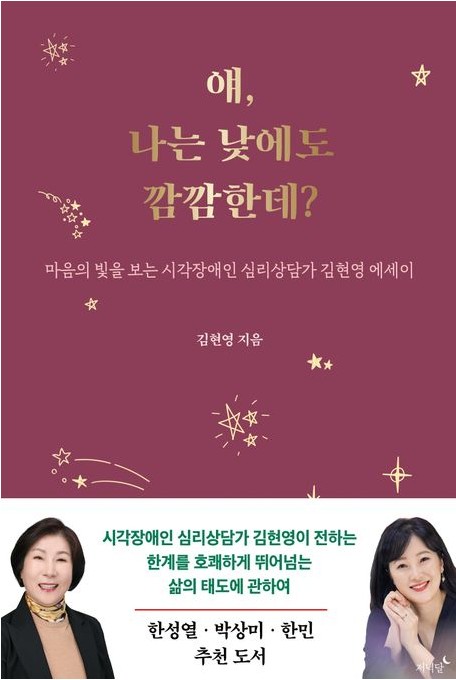 대학에서 장애학생지원센터는 학부 학생만 서비스를 해 주어 대학원생이 혜택을 받을 수 있도록 건의하여 혜택을 받을 수 있기까지 많은 시간이 걸렸다. 석사과정에서는 학우의 도움을 그래도 받기가 수월했는데, 박사과정은 각자가 바빠 공부하기가 더욱 힘들었다. 수업을 마치고 밤이 되어 한 학우가 깜깜한데 대전까지 어떻게 가려는지 걱정하자 김현영 작가는 ‘얘, 낮에도 나는 깜깜한데?’라고 말하는 여유를 보인다. 이것을 책 제목으로 뽑았다.