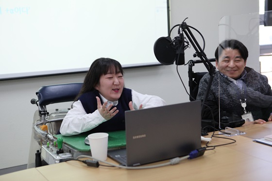 지난 2월 17일 내가 근무하는 한마음복지관 직원 교육 강사로 대학동기인 진영(사진 왼쪽)이를 섭외했다. ⓒ최충일 에이블포토로 보기▲ 지난 2월 17일 내가 근무하는 한마음복지관 직원 교육 강사로 대학동기인 진영(사진 왼쪽)이를 섭외했다. ⓒ최충일비장애인만 장애인을 도울 수 있는 것은 아니다.
