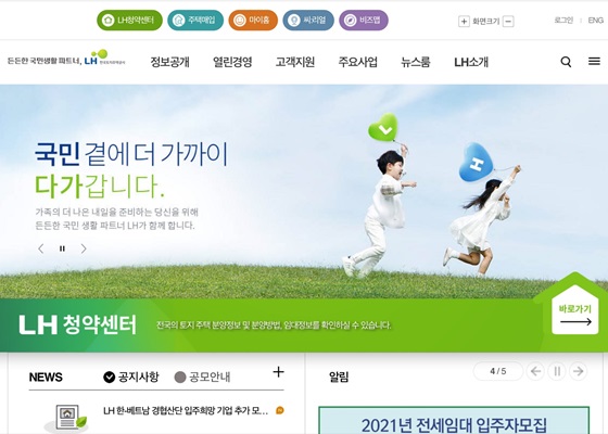 LH주택공사의 홈페이지 화면. ⓒ조현대