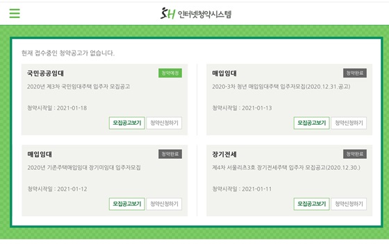 SH주택공사의 청약 화면. ⓒ조현대
