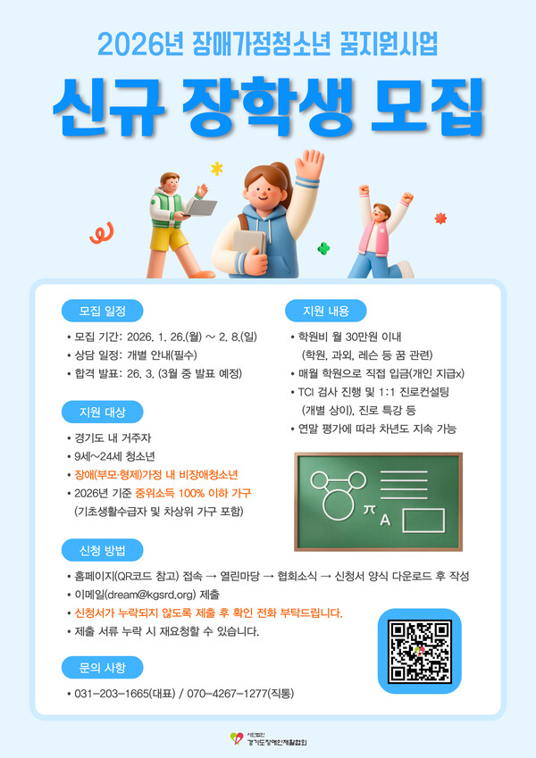 경기도장애인재활협회, ‘장애가정청소년 꿈지원’ 신규 장학생 모집