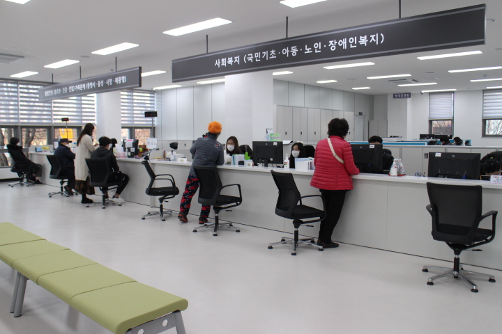 2층 민원실 창구는 휠체어를 사용하는 장애인을 위해 턱을 낮췄지만, 밑에 휠체어가 들어갈 공간이 마련돼 있지 않아 불편을 겪을 것으로 보였다. ⓒ박종태 에이블포토로 보기▲ 2층 민원실 창구는 휠체어를 사용하는 장애인을 위해 턱을 낮췄지만, 밑에 휠체어가 들어갈 공간이 마련돼 있지 않아 불편을 겪을 것으로 보였다. ⓒ박종태