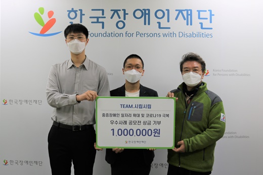 서울시립대학교에 재학 중인 이호은(사회복지학과 4학년), 최진유(경영학과 4학년) 학생이 지난 18일 공모전에서 받은 상금 100만원을 한국장애인재단(이사장 이성규)에 기부했다. ⓒ한국장애인재단 에이블포토로 보기▲ 서울시립대학교에 재학 중인 이호은(사회복지학과 4학년), 최진유(경영학과 4학년) 학생이 지난 18일 공모전에서 받은 상금 100만원을 한국장애인재단(이사장 이성규)에 기부했다. ⓒ한국장애인재단서울시립대학교에 재학 중인 이호은(사회복지학과 4학년), 최진유(경영학과 4학년) 학생이 지난 18일 공모전에서 받은 상금 100만원을 한국장애인재단(이사장 이성규)에 기부했다.