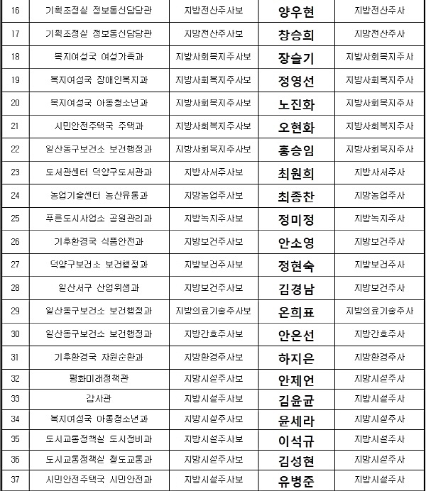 고양시, 6급 46명·7급 116명·8급 123명 상반기 승진자 발표 페이지 정보 작성자 햇빛촌 조회 15,827회 작성일 21-01-13 10:57 본문 기사입력 2021-01-13 02:14 최종수정 조연덕 (gyinews7@gmail.com) 목록 이전글김수환 의원 '재산권보장·지역활성화 위해 고양시내 수색비행장 이전·폐쇄해야' 21.01.13 다음글수원시, 제설작업 총력 대응 21.01.13 댓글목록 댓글목록 등록된 댓글이 없습니다.
