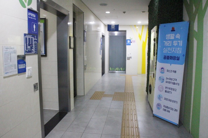지난 5일 직접 방문해 점검한 결과 남녀장애인화장실은 맞이방 남녀비장애인화장실 입구에 마련돼 있어 성별이 다른 활동보조인의 도움을 받을 수 있고, 출입문도 터치식자동문으로 손이 불편하거나 휠체어를 사용하는 장애인의 이용이 편리하다.