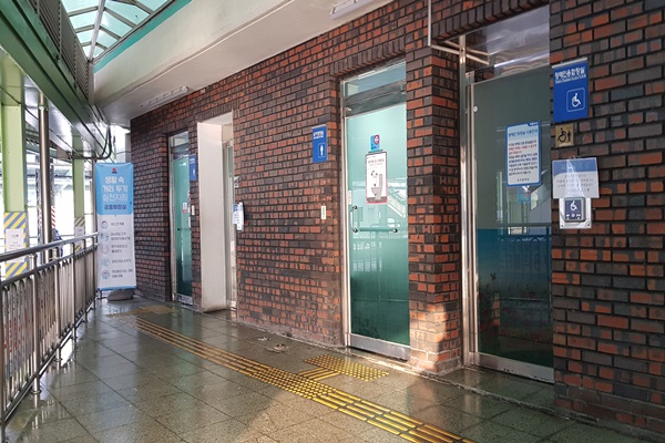 조치원역 충북선 승강장 1번홈 바로 옆에 마련된 남녀장애인화장실이 동파로 인해 사용할 수 없는 상황이다. ⓒ박종태 에이블포토로 보기▲ 조치원역 충북선 승강장 1번홈 바로 옆에 마련된 남녀장애인화장실이 동파로 인해 사용할 수 없는 상황이다. ⓒ박종태세종특별자치시 조치원읍 조치원역 충북선 승강장 1번홈 바로 옆에 마련된 남녀장애인화장실이 동파로 인해 사용할 수 없는 상황이다.