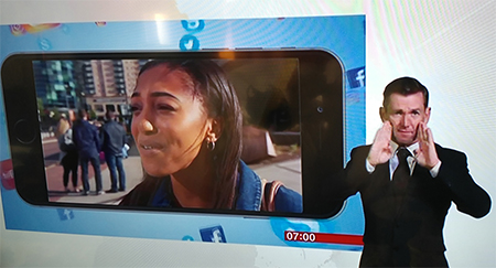 영국 BBC 아침뉴스에서 진행되는 '수어로 전하는 뉴스' 방송 화면. ⓒ장지용 에이블포토로 보기▲ 영국 BBC 아침뉴스에서 진행되는 '수어로 전하는 뉴스' 방송 화면. ⓒ장지용묵은 때 같았던 이슈도 이제야 끝이 난 것도 있습니다. 장애계에서는 그동안 요구해왔던 지상파 텔레비전 메인 뉴스 시간에 수어 통역을 볼 수 있게 되었습니다. 농인들을 중심으로 몇 년간 요구해왔던 이슈였는데, 이제야 해결을 보니 참으로 다행이라 하겠습니다. 개인적 생각은 동시통역하기에는 수어통역사 크기가 작으니, 여유가 되면 영국 BBC의 사례처럼 아침 뉴스 정도에서는 수어통역사를 큼지막하게 보여주는 ‘수어로 전하는 뉴스’ 시간을 도입하는 것도 대안이 될 수 있겠다고 봅니다.