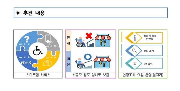 경기도가 장애인에게 음식점, 카페, 숙박업소 등 편의시설 정보를 제공하는 스마트앱 서비스를 추진한다. 소규모 민간 편의시설에는 장애인의 이동 편의와 접근성 향상을 위한 경사로 설치 비용도 지원한다.