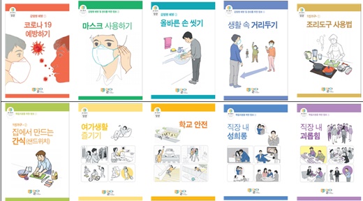 책자의 제목으로는 ‘감염병 예방 및 관리를 위한 정보’에 ▲코로나19 예방하기 ▲마스크 사용하기 ▲올바른 손씻기 ▲생활 속 거리두기가 있으며, ‘독립지원을 위한 정보’ 로는 ▲1인가구_조리도구 사용법 ▲1인가구_집에서 만드는 간식(샌드위치) ▲여가생활 즐기기 ▲학교 안전 ▲직장 내 괴롭힘 ▲직장 내 성희롱이 있다.