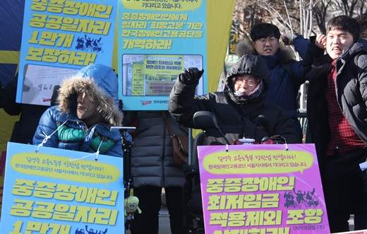중증장애인 노동권을 외치는 활동가들 모습.ⓒ에이블뉴스DB 에이블포토로 보기▲ 중증장애인 노동권을 외치는 활동가들 모습.ⓒ에이블뉴스DB