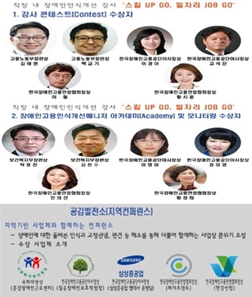 이번 시상식에서는 강사 콘테스트, 장애인고용인식개선매니저 아카데미 및 모니터링, 지역기반 사업체와 함께하는 컨퍼런스 부문에서 최우수상, 우수상, 장려상 등 총 17명(5개 사업장 포함)이 수상의 영광을 안았다.