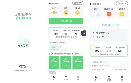 서울시설공단은 기존 ‘장애인콜택시’ 앱의 바로콜, 예약콜, 지도 검색 기능을 흡수하고 여기에 예상 배차 대기시간 확인 기능 등을 추가해 기존 앱을 대체하는 업그레이드 버전의 신규 앱을 출시했으며, 구글플레이(안드로이드)나 앱스토어(아이폰)에서 ‘서울장애인콜택시’ 앱을 다운받아 사용하면 된다.