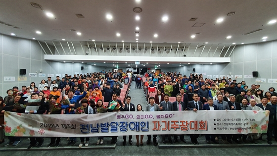지난 2019년 10월 18일 전남장애인권익옹호네트워크가 개최한 전남발달장애인 자기주장대회 모습. ⓒ전남장애인권익옹호네트워크 에이블포토로 보기▲ 지난 2019년 10월 18일 전남장애인권익옹호네트워크가 개최한 전남발달장애인 자기주장대회 모습. ⓒ전남장애인권익옹호네트워크전남장애인권익옹호네트워크(대표 김준현)가 오는 27일 ‘코로나19 STOP! 우리들의 이야기 GO!’를 슬로건으로 제4회 전남발달장애인 자기주장대회를 개최한다.