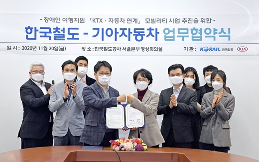 기아자동차, 한국철도와 교통약자 여행 지원 위한 업무협약 체결 기아차와 한국철도(코레일)가 장애인의 이동권 신장을 위해 협력한다.ⓒ기아자동차 초록여행 에이블포토로 보기▲ 기아자동차, 한국철도와 교통약자 여행 지원 위한 업무협약 체결 기아차와 한국철도(코레일)가 장애인의 이동권 신장을 위해 협력한다.ⓒ기아자동차 초록여행기아자동차가 지난 20일 신동수 기아자동차 경영전략실장, 김양숙 한국철도 미래전략실장 등 주요 관계자들이 참석한 가운데 한국철도 서울본부(서울시 중구 소재)에서 ‘장애인 여행 지원을 위한 모빌리티 연계 업무협약(MOU)’을 체결했다.
