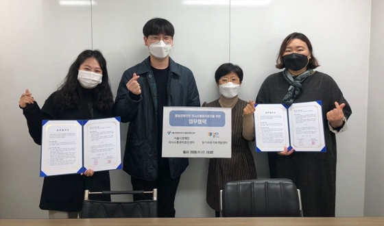 읽기쉬운자료개발센터 알다가 17일 서울시 의사소통권리증진센터와 발달장애인의 의사소통 증진과 사회참여를 위해 업무협약을 체결했다. ⓒ읽기쉬운자료개발센터 알다 에이블포토로 보기▲ 읽기쉬운자료개발센터 알다가 17일 서울시 의사소통권리증진센터와 발달장애인의 의사소통 증진과 사회참여를 위해 업무협약을 체결했다. ⓒ읽기쉬운자료개발센터 알다읽기쉬운자료개발센터 알다(이하 알다센터)가 17일 서울시 의사소통권리증진센터(이하 의사소통센터)와 발달장애인의 의사소통 증진과 사회참여를 위해 업무협약을 체결했다.