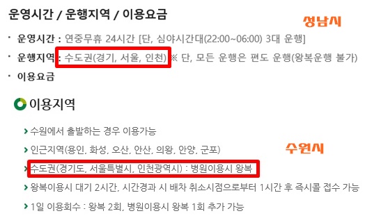 먼저 성남시 장애인콜택시의 경우 운행지역은 ‘수도권’으로, 경기, 서울, 인천지역까지 가능하다. 단, 모든 운행은 편도로만 가능했다.