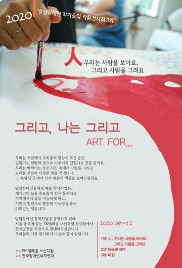 ▲ 발달장애인 작가 전시회 ‘그리고, 나는 그리고 ART FOR’ 포스터. ⓒ전국장애인부모연대 전국장애인부모연대는 서울시 종로구에 있는 SK 보신각점 전시공간에서 발달장애를 가진 예술창작자들의 작품 전시회 ‘그리고, 나는 그리고 ART FOR’을 진행 중이라고 6일 밝혔다.