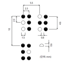 ▲ 점자 규격 그림(예시).ⓒ문화체육관광부 문화체육관광부가 10일 종이, 스테인레스 등 재질에 따라 각기 다른 점 높이, 점간 거리 등과 같은 점자의 물리적 규격을 표준화한 ‘한국 점자 규정’을 개정 고시했다.