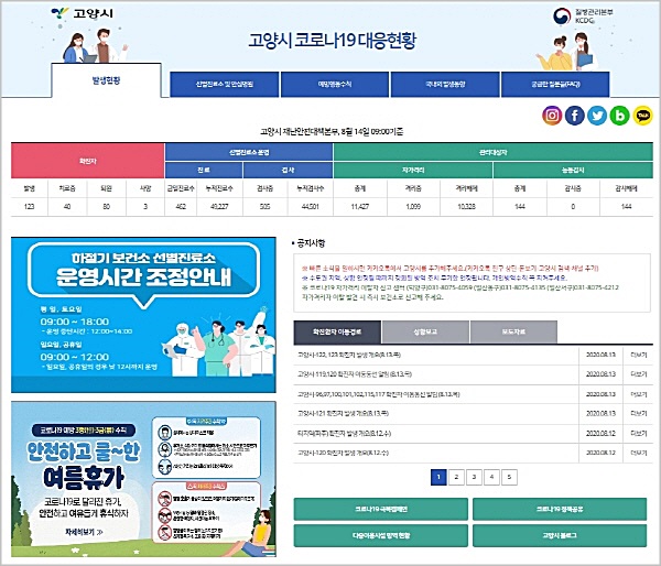 특히 고양시는 소규모 교회 관련 최초 확진자가 발생한 8월 5일 이후 집단감염 사태로 번지면서 역학조사에 과부하가 걸려 동선 공개가 늦어졌고, 이후 공개된 확진자들의 이동동선도 상호명를 밝히지 않고 ‘00병원’, ‘00은행’, ‘00음식점’으로만 표시해 주민들의 불안과 불만이 커지고 있다.
