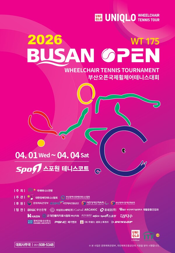 【에이블뉴스 이슬기 기자】부산광역시장애인테니스협회와 국제테니스연맹(ITF)가 주최하는 ‘2026 부산오픈 국제휠체어테니스대회’가 오는 4월 1일부터 4일까지 금정구 부산시설공단 스포원테니스경기장에서 열린다.