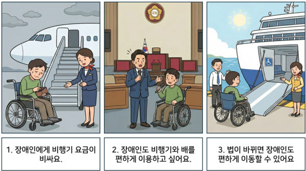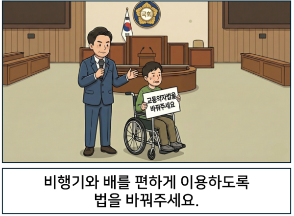 장애인이 비행기와 배를 편하게 탈 수 있도록 법을 바꿔주세요