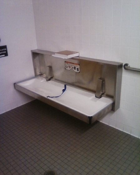 성인용 체인지테이블이 설치된 화장실. ⓒ saaby, Adult disabled changing table public toilet.jpg, CC BY-SA 2.0.