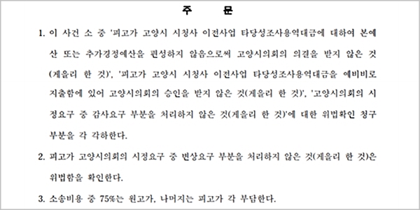 한편, 고양시는 이번 1심 판결과 관련해 소송 쟁점 중 “3개 항목 각하, 1개 항목 인용” 결과에 대해 유감을 표하며 법리 검토 후 항소를 제기할 계획이라고 17일 밝혔다.