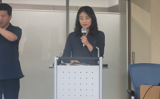 23일 오후 3시 서울 여의도 이룸센터에서 개최된 ‘장애와 이주, 이중의 차별을 넘어’ 토론회에서 발제하는 재단법인 동천 권영실 변호사. ©에이블뉴스