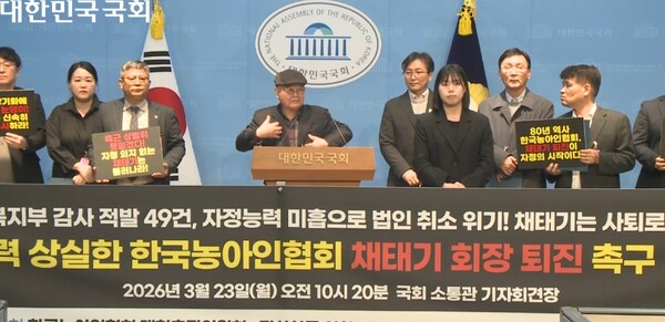 【에이블뉴스 이슬기 기자】한국농아인협회 개혁추진위원회와 정상화를 위한 비상대책위원회(이하 위원회)가 23일 오전 10시 20분 박주민·이수진·김영호 의원과 함께 국회 소통관에서 기자회견을 갖고, 내부 비리 및 인권 침해 논란으로 파행을 겪고 있는 한국농아인협회(이하 협회)의 전면적인 개혁과 현 집행부의 즉각 사퇴를 촉구했다.