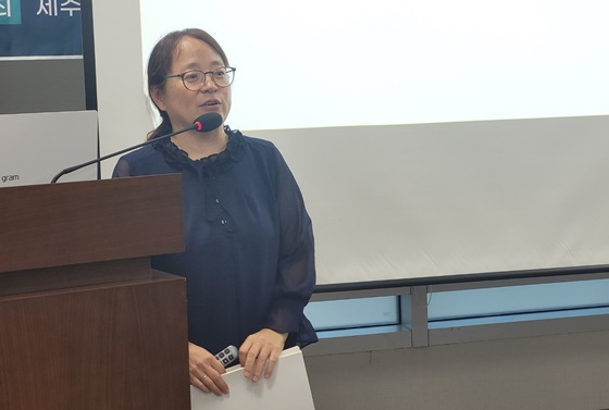 8일 오후 2시 개최된 ‘제주 장애인 권익옹호기관 성폭력 사건 후속 과제 논의를 위한 토론회’에서 발제하는 김성연 제주특별자치도장애인권익옹호기관 기관장. ©에이블뉴스