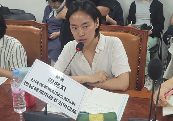 8일 오후 2시 개최된 ‘제주 장애인 권익옹호기관 성폭력 사건 후속 과제 논의를 위한 토론회’에서 토론하는 전국성폭력상담소협의회 전남북제주광주권역 김은지 대표. ©에이블뉴스