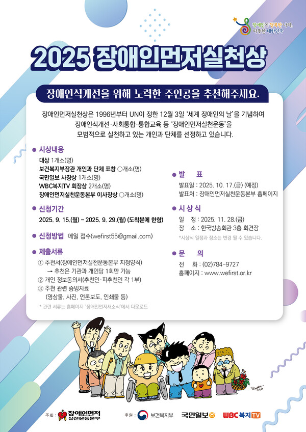 ‘2025 장애인먼저실천상’ 후보자 접수‥15~29일까지