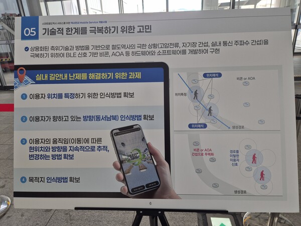 지난 8월 27일 수서역에서 국가철도공단이 장애인 실내 길안내 시스템 개발 결과물을 설명하는 전경. ©박종태