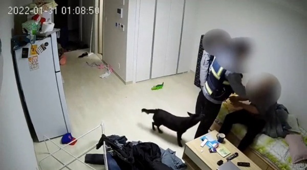 2022년 1월 31일, 이웃의 신고로 경기도 평택에 거주하는 지적장애인 A씨 집에 들이닥친 경찰들이 수갑을 채운 뒤, 폭행 등을 가한 모습이 CCTV에 담긴 장면. ⓒMBC뉴스 유튜브 동영상 캡쳐