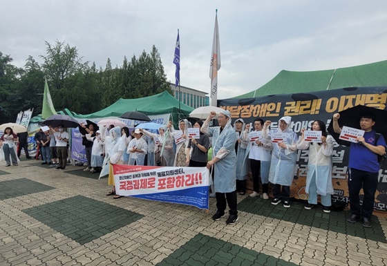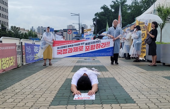 “동료지원센터 국정과제 포함하라” 정신장애인들 폭우속 오체투지