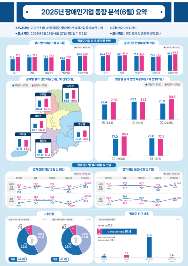 장애인기업종합지원센터는 “기준금리 인하(3.0%→2.5%)와 소비자심리지수 회복, 정부의 민생경제 추경 등 대내외 경제환경이 긍정적으로 작용한 것으로 보인다”고 분석했다.