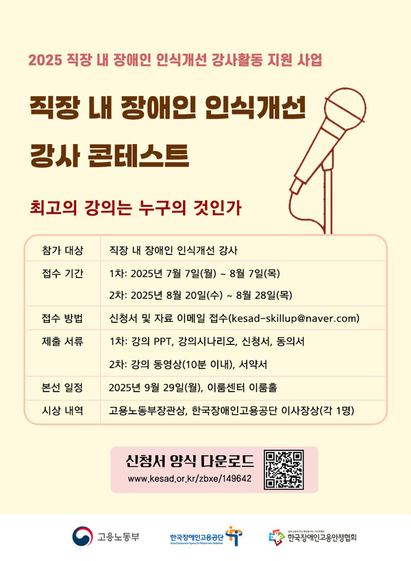 이번 콘테스트는 직장 내 장애인 인식개선 강사의 전문성과 강의 역량을 강화하고, 우수 강의를 발굴·공유함으로써 인식개선 교육의 질적 향상을 위해 마련됐다.