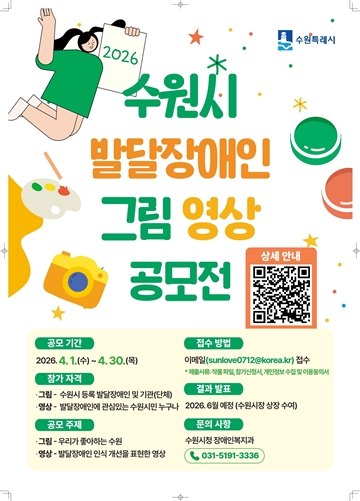 【에이블뉴스 백민 기자】 수원특례시(시장 이재준)가 오는 4월 1일부터 30일까지 ‘2026년 수원시 발달장애인 그림·영상 공모전’을 연다.