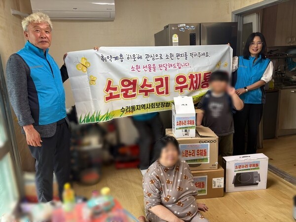 이날 함께한 양애자 수리동장은 “작은 지원이지만 이웃의 생활이 실제로 개선되는 모습을 보며 큰 보람을 느꼈다”며 “협의체와 손잡고 따뜻한 수리동을 함께 만들어가겠다”고 말했다.