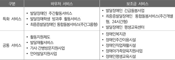 발달장애인 관련 지역사회 중심 서비스 현황. ©한국보건복지인재원